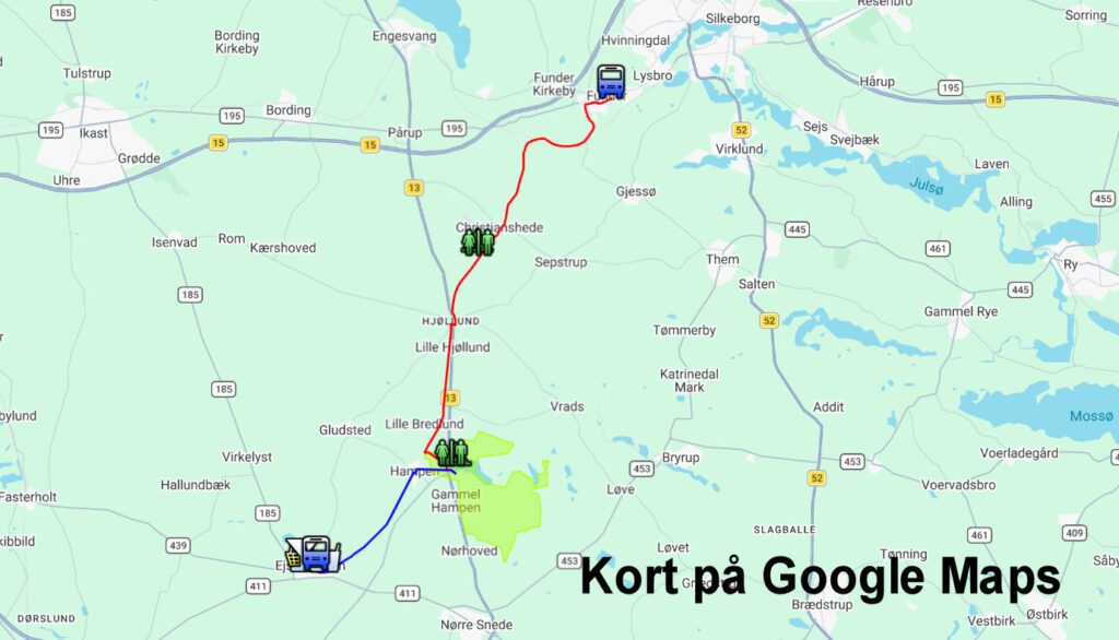 Herunder er et kort på Google Maps med ruten (klik på billedet).