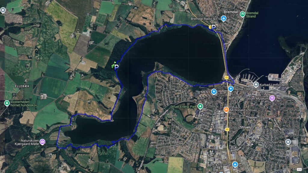 Der er lavet en trampesti hele vejen rundt, hvor en del går gennem indhegning med dyr.